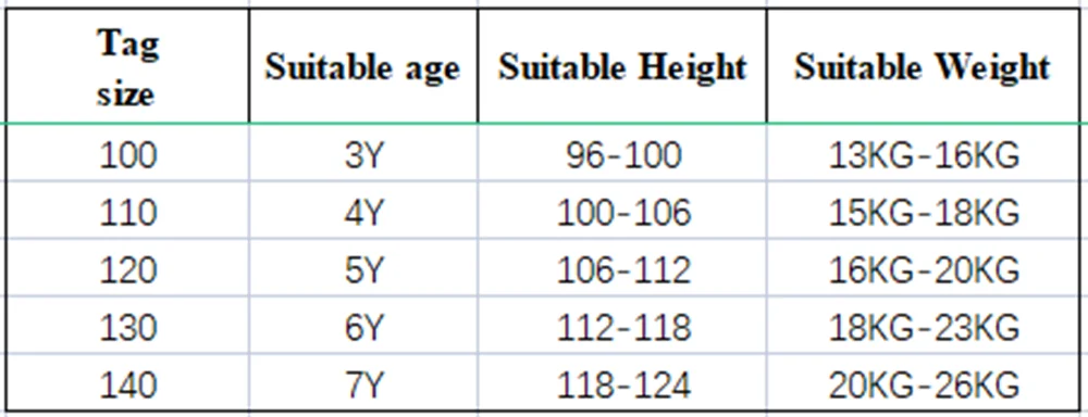 3T: recommended height: 96-100CM; recommended weight: 13-16KG